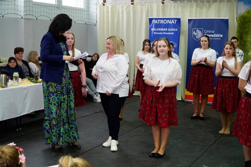 Dyrektor ZSP w Kielczy p. Magdalena Kolmasiak podziękowała również Radzie Rodziców za wsparcie naszej placówki przez ufundowanie pięknych strojów, w których nasi młodzi artyści pojawili się na scenie oraz poczęstunku dla gości i uczestników konkursu.