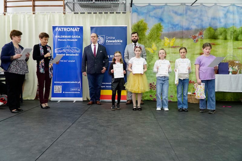 Szczególne podziękowania należą się również osobie, która po Pani Sylwii przejęła organizację tego wyjątkowego konkursu: Pani Bronisławie Ostrowskiej – Saternus, którą dzielnie wspierali Pan Sławomir Zielonka pomysłodawca konkursu ,,Ale jajo! Pstryk!”, Pani Paulina Sankowska – nowa prezeska Stowarzyszenia ,,Bliżej Szkoły” oraz Pani Kornelia Lewandowska – kontynuatorka tradycji kroszonkarskich.