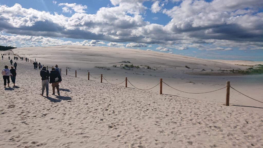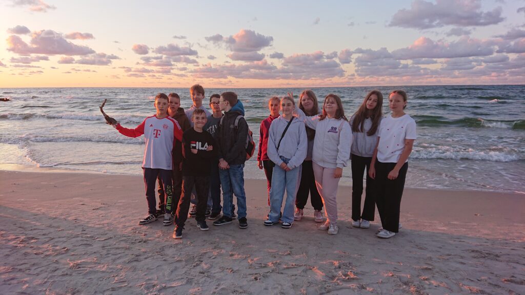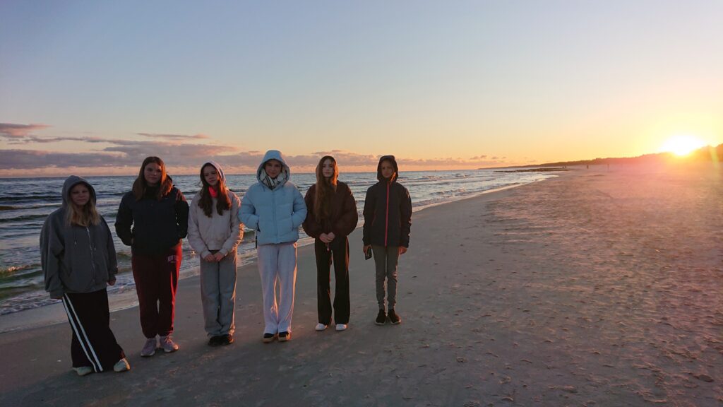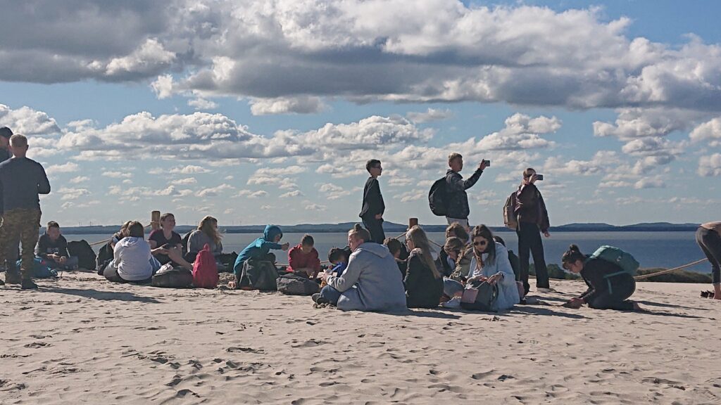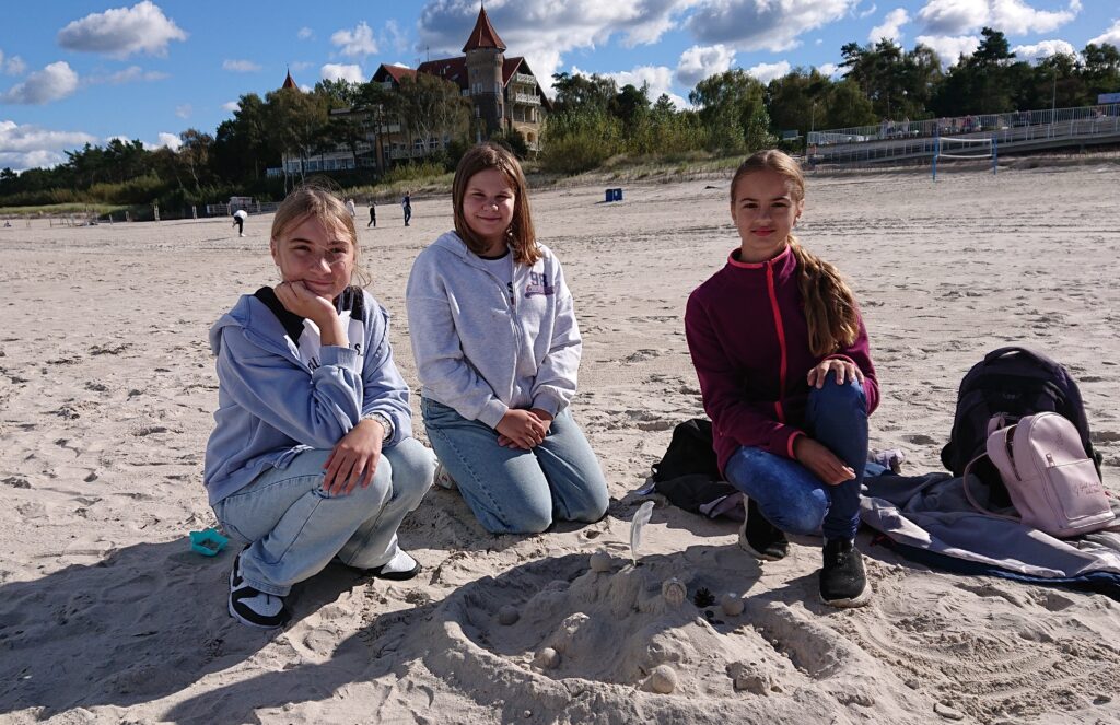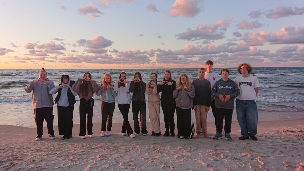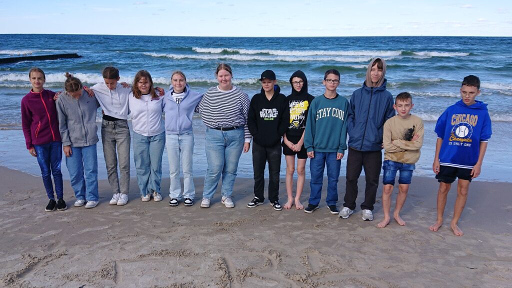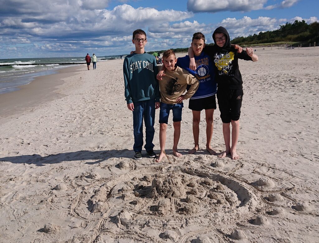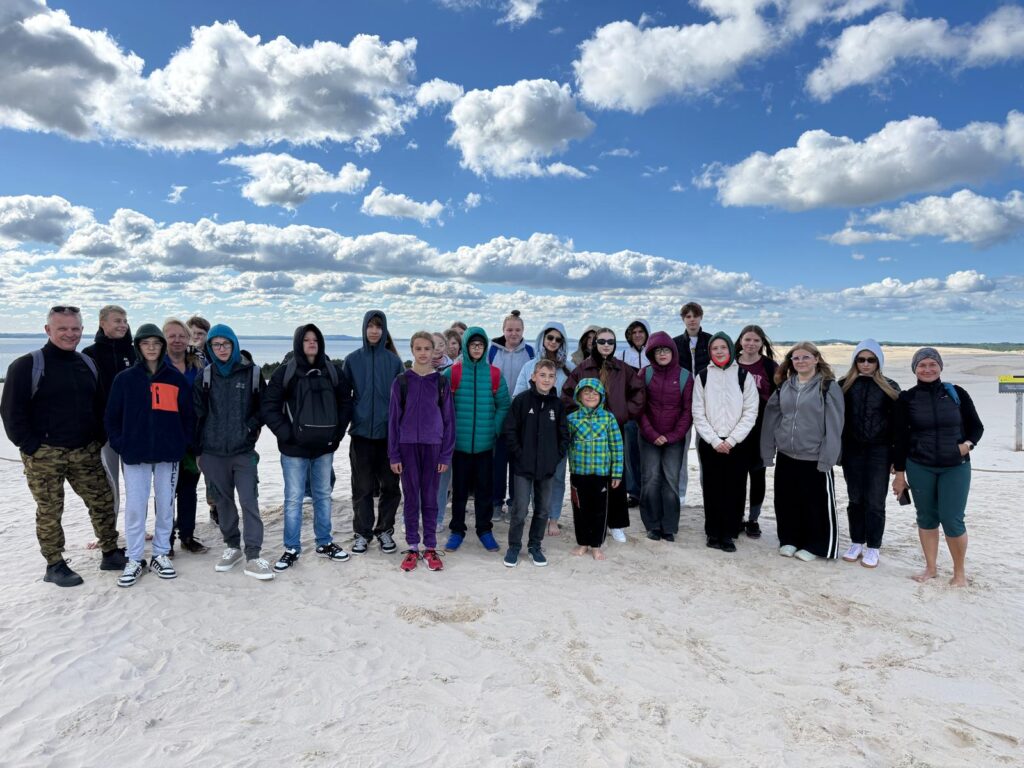 W końcówce września klasy 7 i 8 wraz ze swoimi nauczycielami udały się na północ kraju. Już jadąc pociągiem, poznawaliśmy uroki naszej ojczyzny. Musnęliśmy Lębork, w którym żył wynalazca tzw. tarczy Nipkowa, dzięki której możemy delektować się ulubionymi programami telewizyjnymi. Miejscem docelowym była urocza Łeba. Pogoda dopisała, można więc było pokusić się o zamoczenie stóp w Bałtyku. Świetną zabawą było tworzenie budowli z piasku, obok zamków powstał ciekawy sfinks, dla którego głowę stracił jeden z uczestników wyprawy😉Kieszenie wypełniły się muszelkami, kamykami i oszlifowanymi przez morze szkiełkami. Prawdziwym maratonem i sprawdzianem dla naszych stóp okazał się wielokilometrowy spacer po Słowińskim Parku Narodowym. Ciekawostki opowiadane przez przewodnika umilały nam czas. Atrakcją była możliwość sturlania się z wydmy w specjalnie wytyczonym miejscu. Skorzystali wszyscy, no prawie, nauczyciele jakoś ominęli szerokim łukiem tę atrakcję 😉 Bursztynów na plaży nie znaleźliśmy, ale za to odwiedziliśmy Muzeum Bursztynu. Obserwowaliśmy wschody i zachody słońca, choć amatorów tych pierwszych było nieco mniej😊Z podziwem patrzyliśmy też na kołysane przez fale kutry rybackie, które dzielnie zmierzały na łowiska. Wybrzeże Bałtyku kryje niejedną perłę. Warto się nad nie wybrać. Bardzo dziękujemy pani Monice i Basi, które znalazły dla nas to miejsce, a wszystkim nauczycielom za to, że mieli na nas oko.